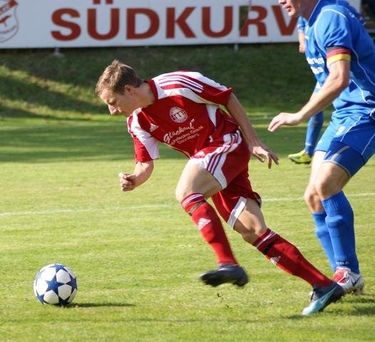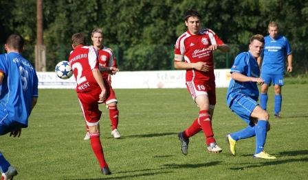 Obwohl das Endergebnis etwas anderes aussagt, sah es nicht unbedingt von Beginn an gut aus für die Germanen. Mit Kai Rebhan stand mittlerweile der vierte Keeper der Saison im Kasten, auch im übrigen Defensivverbund musste Trainer Bohnenstengel verletzungsbedingt umstellen. So waren einige Unstimmigkeiten und Unsicherheiten in der Anfangsphase nicht zu übersehen. Sachsenbrunn war aber nicht in der Lage daraus Kapital zu schlagen. Nach einer Viertelstunde hatten sich die Gäste gefangen und versuchten dem Spiel ihren Stempel aufzudrücken Gögel traf die Kugel nicht richtig, Rauh zog aus 10 Metern ab, Mittenzwei klärte zur Ecke. Hinten verlor A. Fischer den Ball, konnte in höchster Not aber noch selbst klären. Das zweite Comeback bei den Westlern feierte für viele überraschend Frank Ditscheid, und wie! Als wäre er nie weg gewesen, ließ er drei, vier Gegenspieler stehen; Mittenzwei holte ihn von den Beinen. Schiri Laube entschied sofort auf Strafstoß und verwies den Keeper der Falken des Platzes (23.). Andreas Fischer lief zum Elfer an und ließ dem eingewechselten Ahlgrimm keine Chance (26.). In Unterzahl wollten sich die Hausherren aber nicht so schnell geschlagen geben, Rebhan hielt einen Freistoß aus dem Anstoßkreis sicher, Löbels Drehschuss wurde noch abgefälscht. Kirchner griff dann über Rechts an, Büchner verpasste die flache Eingabe noch, dahinter lauerte Ditscheid und schoss zum 2:0 ein (37.). Nachdem sowohl Dorst mit Links als auch Rexheuser mit Rechts neben oder über das Gebälk gezielt hatten, irrten sich Ahlgrimm und einer seiner Verteidiger. Ditscheid war zur Stelle und köpfte das Leder aus ungefähr einem Meter über die Linie. Zwischendurch hätte Müller den Anschluss erzielen müssen, schoss im Fünfmeterraum alleinstehend aber Rebhan in die Arme. Außerdem fühlte sich Frank Fischer in einem Zweikampf benachteiligt. Ihm wurde kein Freistoß zugesprochen, also trat er seinem Gegner von hinten in die Beine. Logische Folge: Rot.