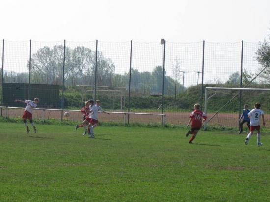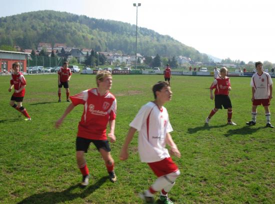 Bettelhecken. Die Westler starteten in dieses Nachholspiel gegen die in Bestformation (O-Ton des Gästetrainers) antretende SG nach dem Erfolg gegen Eisenach schwungvoll und gingen prompt mit 1:0 in Führung. Das Anspiel des Torwarts nicht erwartend, luchste Fabian Rädlein dem Gumpelstädter Feldspieler das Spielgerät ab und traf ins verwaiste Tor (6.). Die Gäste antworteten, doch mit viel Glück fiel der Ausgleich nach Chancen von Kämpf noch nicht. Auf der Gegenseite hatte Max Töpfer frei vor dem Keeper die Chance auf das 2:0, doch Norske parierte (17.). Wie das im Fußball so häufig der Fall ist, folgte die Strafe umgehend nach einer zugegeben tollen Kombination, bei der sich letztlich Lipp außen durchsetzte, in den 16er ging und dort die Übersicht für den frei stehenden Kallenbach bewahrte, der den Ball einfach reinmachen musste. Ein schönes Tor, allerdings unter gütiger Mithilfe unsere Mannschaft (19.). Nach einem Ballverlust Max Töpfers, der keine Anspielstation fand, folgte das 1:2 – Balleroberer Kallenbach passte mustergültig auf den startenden D-Junior P. Scharfenberg, der gekonnt vollendete (24.).