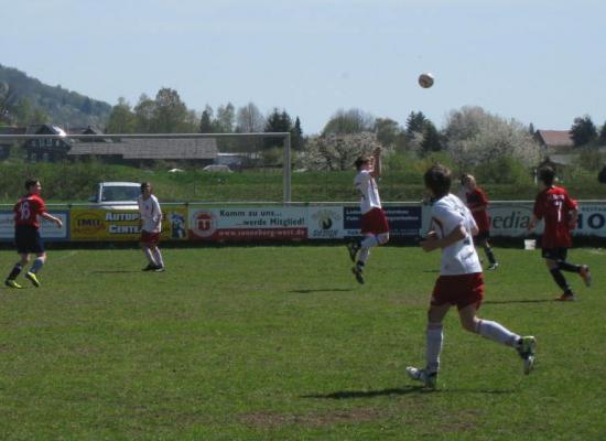 Während des gesamten Spiels hatten die Gastgeber leicht die Oberhand und hätten bereits zu Beginn der Partie in Führung gehen müssen, doch Max Eschrichs Schüsse gingen gleich zweimal an die Latte (5. + 10.) und bei einer guten Eingabe zeigte er sich zu überrascht. Durchatmen auf der Gegenseite, denn nach einer missglückten Rückgabe schlug Kevin Wegener den Ball genau auf einen Eisenacher, dessen Schuss aber pariert wurde. Vor dem 1:0 durch den TSV hielt der groß gewachsene Ziehn stark gegen Roth, der nach einem schönen Schmidt-Pass frei vor ihm auftauchte. Es folgte das angesprochene 1:0 durch Johannes Roth, der ein Zuspiel von Max Töpfer im Strafraum annahm und sich danach stark behauptete. (14.). Nur kurz darauf fiel der Ausgleich nach einem überflüssigen Freistoß von halbrechts, den Kevin Wegener nicht festhalten konnte und Eisenachs Wolter abstaubte (16.). Vom Anstoß weg dauerte es erneut nur wenige Sekunden, ehe Max Töpfers Eingabe für alle überraschend im Netz zappelte (17.). Bis zur Pause gab es auf beiden Seiten einige Gelegenheiten, die Defensive beider Teams ließ viel zu. Den größten Riesen dabei hatten die Gäste, doch K. Wegener parierte aus Nahdistanz großartig, nachdem der sonst gut stehende Max Züllich ein Luftloch geschlagen hatte. Das nächste Tor sollte dann nach einem Foul an Max Eschrich fallen, Torwart Kevin Wegener verwandelte auch die berechtigte Wiederholung des Elfers sicher (34.).