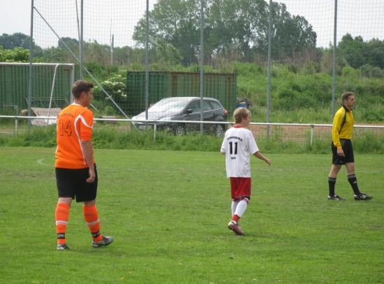 Davon beeindruckt fand der TSV in den ersten zehn Minuten überhaupt keinen Zugriff und Borntal hatte viel zu viel Platz und konnte seine ebenfalls beeindruckenden technischen Fähigkeiten ungestört demonstrieren, was auch zu schnellen 1:0-Führung durch Köhlers trockenen Schuss aus 20m führte (4.). Nach zehn Minuten legten die Germanen ihren Respekt ab und kamen immer besser in das Spiel, wobei vor allem über die linke Seite (Max Eschrich) der ein oder andere gefährliche Vorstoß gelang. Ein Tor sollte unseren Jungs nicht vergönnt sein, dennoch lag es unmittelbar vor dem Pausenpfiff des sicher leitenden Reinhard Meusel in der Luft.