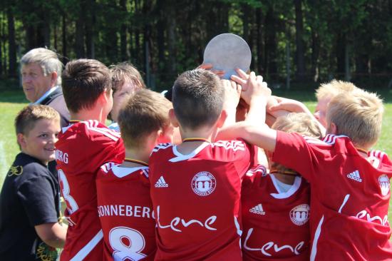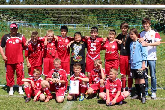 Nach dem Spiel überreichten Weiterbildungschef P. Götte und der stellvertr. Jugendausschussvorsitzende des KFA Südthüringen M. Bräutigam den Pokal an unsere Kindern, die sich nun verdienterweise feiern ließen. Hierbei bekam der Trainer die übliche Dusche mit sämtlich gefundenen Flüssigkeiten auf dem Platz ab.