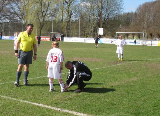 Die Zuschauer sahen am Anfang ein verteiltes Spiel, bei dem auch die Suhler Gäste immer wieder zu guten Chancen kamen, doch die dieses Mal im Tor aufgebotene Mercedes Liebermann und ihre Vorderleute verhinderten ein Gegentor. Der einzige Treffer in der ersten Hälfte fiel nach einem Eckball von Moritz Michel, dessen Eingabe Klaus Puff per Kopf einnetzte.