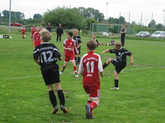 Bettelhecken. Die Westler begannen gegen den spielstarken Tabellenführer konzentriert, konnten sich aber nur selten aus der Umklammerung der Wackeraner befreien. Dennoch hatten sie die riesen Chance zur Führung, doch Maximilian Böhme nagelte den an ihm selbst verwirkten Strafstoß an die Latte. Nur kurz darauf die Führung des Favoriten durch Madlebs starkes Solo, bei dem er einige Westler stehen ließ (18.). Das umgehend folgende 0:2 war ein Geschenk des viel beschäftigten TSV-Torwarts Maximilian Nagel, dessen Abwurf gedankenschnell Madleb aufnahm und einschob (20.). Unsere Mannschaft war nun sichtlich verunsichert, und so folgte unmittelbar vor der Pause noch das 0:3 durch Hädicke, wobei vor allem die Entstehung – eine sehenswerte schnell vorgetragene, lehrbuchreife Kombination – allen Zuschauern Respekt abnötigte, allerdings ließen wir sie auch zu.
