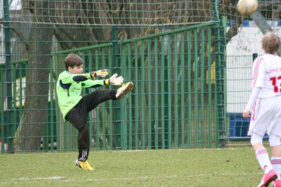 In der 12. Minute fiel dann überraschend der Führungstreffer für die Germania als Tim Bartl den Ball mit viel Drall Richtung Erfurter Tor brachte. Der Torhüter der Erfurter war sichtlich geschockt als der Ball nachdem er aufkam eine ganz andere Richtung einschlug und im Netz landete. Nun hatte die Germania ihre beste Phase, und es ergaben sich noch weitere Möglichkeiten, die vom guten Schlussmann der Erfurter entschärft oder knapp am Tor vorbeigingen. So ging man mit der 1:0 Führung in die Pause.