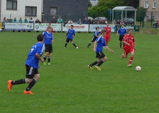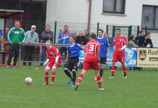 Von Beginn entwickelte sich eine einseitige Partie. Mupperg verteidigte sich mit Mann und Maus; selten gelang ein Angriff bis vor das Sonneberger Tor. Torwart Schindhelm sowie Heinze waren die Türme in der Abwehrschlacht. Die Germanen sündigten jedoch auch in der Verwertung ihrer Torchancen oder trafen eben mehrfach das berühmte Aluminium. Das entscheidende 1:0 fiel aber nicht aus dem Spiel heraus, sondern nach einem berechtigten Foulelfmeter: Nico Schmidt verwandelte nach einem Foul an Florian Horn den folgenden Strafstoß sicher. Zehn Minuten vor Spielende stellten die Mupperger Übungsleiter Rauhut und Heinze ihre Mannschaft um. Daniel Heinze wurde nach vorne beordert. Beinahe hätte ein Freistoß den Spielverlauf auf den Kopf gestellt. Letztlich war aber der Sonneberger Sieg völlig verdient, hätte aber weitaus höher ausfallen müssen.