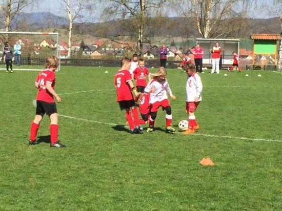 Die neu formierte F2-Mannschaft zeigte an diesem Sonntag zwei starke Leistungen. So lagen wir gegen Judenbach schnell zurück, bekamen dann aber das Spiel in den Griff und erkämpften uns noch ein Unentschieden nach einem Treffer von Tobias. Noch besser lief es dann gegen Häselrieth... In diesem Duell zeigte sich unsere Mannschaft spielerisch sowie läuferisch klar überlegen und gewannen das Spiel verdient mit 2:0 (beide Tore durch Tobias)... Weiter so!Aufgebot: Moritz; Alec, Leo, Elli, Tobias (3), Fynn, Julian, Felix, WilliDas nächste Turnier findet am Sonntag, den 3.5.2015 um 9.30 Uhr in Neuhaus-Schierschnitz mit Spielen gegen Gellershausen und Lauscha/ Neuhaus statt.