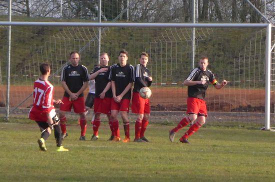 Freistoßvorlage von Toni Pleger per Kopfball unmittelbar unter die Latte. Der