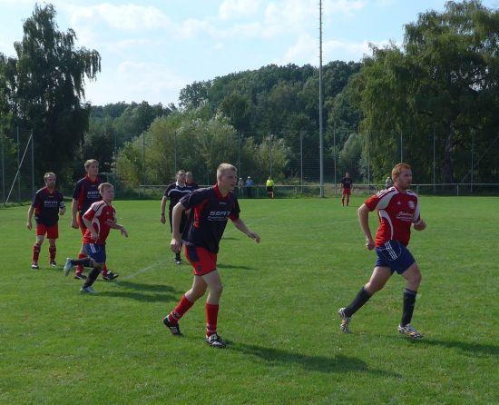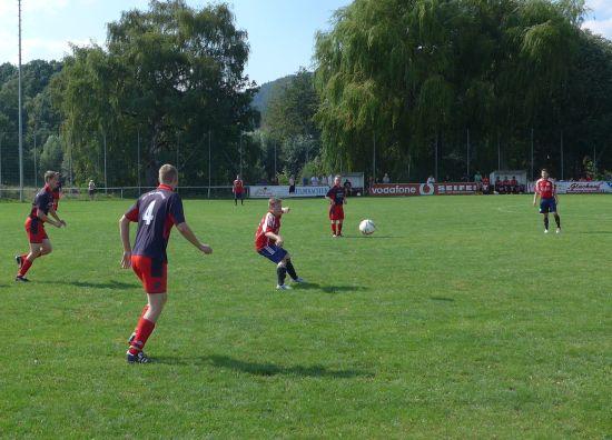 Es kam aber ganz anders... zwar war die Germania bemüht, aber die Angriffe waren wenig durchdacht, und der Wind trug viele lange Bälle ins Toraus. Aus einem Angriff für die Gastgeber sollte auch das entscheidende Tor fallen, ein abgewehrter Ball wurde einfach flach und steil durch die Mitte gespielt, Eberlein im Laufduell gegen Conrad Sieger, und mit letztem Einsatz spitzelte er die Kugel an Bauer vorbei ins Tor. Damit war der Drops schon fast gelutscht, denn ein Aufbäumen konnte man nicht erkennen, der Sturm der Germanen war nicht auf dem Platz, und somit entstand null Gefahr für den Gast. Der eingewechselte Barth hatte per Kopfball nochmals eine Möglichkeit, aber auch hier ging der Ball knapp über die Querlatte. Schiri Weiß beendete eine ganz schwache Partie, bei der die Hausherren nie ins Spiel kamen und verdient die Quittung für den leblosen Auftritt kassierten.