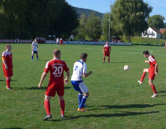 schlug zur frühen Führung für den TSV im Kasten ein. Der SV antwortete umgehend; ein Freistoß aus dem Halbfeld