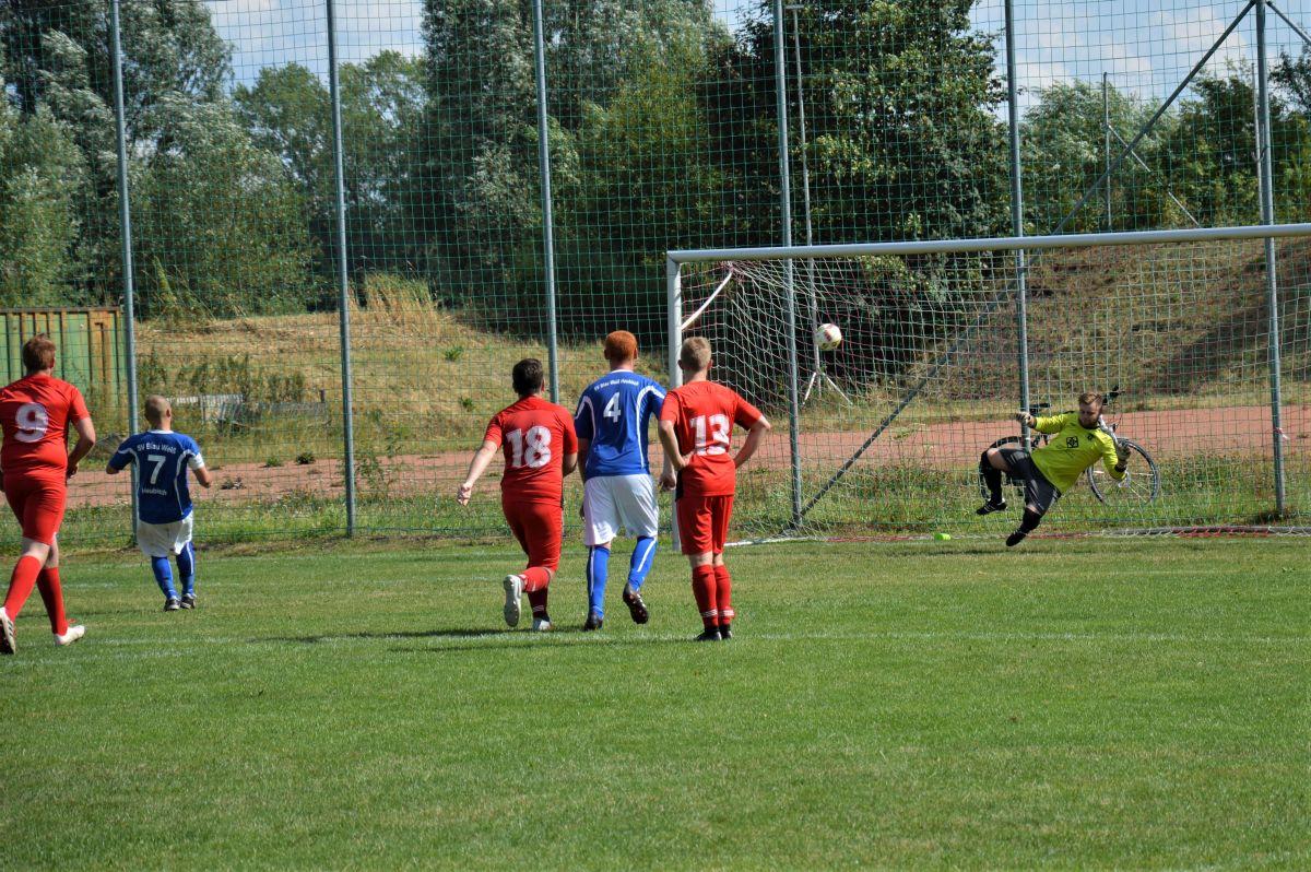 Auch danach hatten wir noch gute Ansätze nach vorn, kamen aber nicht mehr zu klaren Abschlüssen. Und so kommt es dann, das clevere Heubischer jeden Fehler, den wir heute machten, eiskalt bestraften - so geschehen bei der Gästeführung in der 60. Minute durch Zwilling. Aufstecken war aber heute keine Option für uns, und so kämpften wir uns zurück ins Spiel und wurden nach einer Ecke von Mo und einen Hinterkopf-Kopfball vom Kapitän Räder mit dem 2:2 belohnt. Jetzt dachte man, das alles wieder bei 0 losgeht, doch wir wurden eines Besseren belehrt. Ein Sonntagsknaller von Mario Holland II aus gut 30 m schlug unhaltbar in der 70. Minute bei uns ein und eine Minute später, wir hatten nicht mal Zeit uns zu schütteln, gab es schon den Elfmeterpfiff gegen uns und das 2:4 durch Routinier Schwesinger. Von diesem Doppelschlag haben wir uns leider nicht wieder erholt. Wir wechselten zwar und stellten um, aber mehr als 2-3 Schüsse aus der zweiten Reihe waren heute nicht mehr drin. Der fünfte Gegentreffer durch den eingewechselten T. Büchner fiel, da wir nun alles nach vorne geworfen haben. Trotzdem haben wir der Kreisligamannschaft aus Heubisch ordentlich Paroli geboten und kämpferisch eine ordentliche Partie abgeliefert. Wenn wir unsere Fehlerquote weiter senken können und an Kondition-Kraft-Ausdauer noch etwas zulegen, muss uns nicht bange sein für die anstehenden Aufgaben in der 1. Kreisklasse. Tore: 1:0 Philipp Jähnert (3.), 1:1 Fabian Größl (6.), 1:2 Louis Zwilling (60.), 2:2 Robin Räder (69.), 2:3 Mario Holland (72.), 2:4 Elfmeter Christian Schwesinger (74.), 2:5 Toni Büchner (88.)