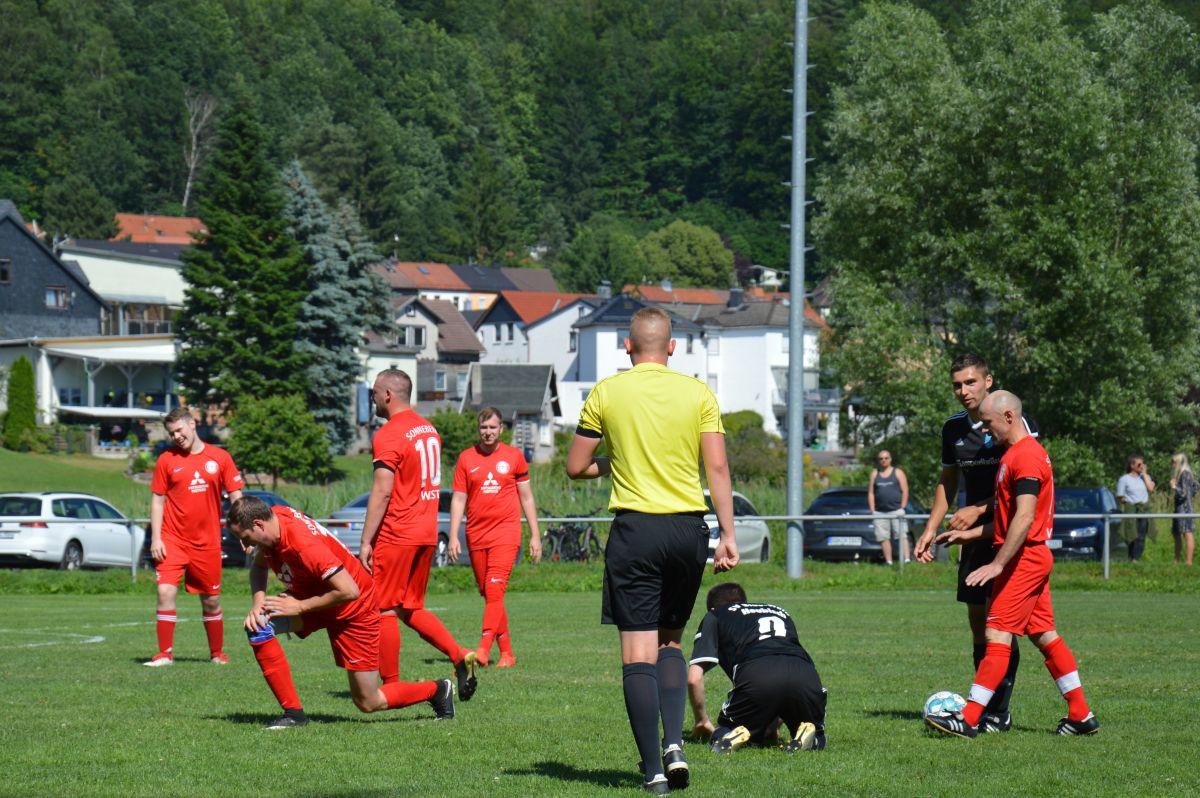 Die Vorfreude auf dieses Highlight war bei Spielern und Fans gleichermaßen groß. Spielertrainer A. Luther konnte auf Verstärkung aus der 1. Mannschaft bauen. So standen Abwehrhüne Räder und Schmidt, der sein erstes Spiel nach langer Verletzungspause machte, in der Startelf. Die beiden Edeljoker Robert - und Philipp Koch mussten zunächst auf der Bank Platz nehmen. Bestes Fußballwetter und eine vielversprechende Partie zog einige interessierte Zuschauer nach langer Corona-Pause an den Karpfenteich. Nach einer ersten Abtastphase beider Teams gingen die Gäste aus Heubisch auch schon 0:1 in Front: Einen gekonnten Pass in die Tiefe erlief sich der agile L. Zwilling und ließ Geisensetter keine Abwehrchance. (6. Minute) Die Heimelf um Spielmacher Steffen Lippmann steckte allerdings nicht auf und erarbeitet sich zunehmend Torraumszenen. Der Ausgleich fiel nach einem gekonnt getretenen Eckball von N. Schmidt. Christian „the Tower" Götz stieg im 16er zum Kopfball hoch und veredelte sehenswert zum umjubelten Ausgleich für die Hausherren (15. Minute). Die Heubischer Angreifer liefen nun wütend an, scheiterten jedoch am starken Geisensetter oder am eigenen Unvermögen. Mit einem 1:1 ging es in die Pause. Nach der Pause ging es weiter wie die erste Halbzeit endete. Die Gäste verlagerten das Spiel sofort in den Strafraum der Westler, und gleich wurde es brenzlig. Götz rettete in letzter Sekunde für den bereits geschlagenen Geisensetter auf der Linie. Fast mit Ankündigung dann der erneute Führungstreffer für die Gäste. Nach einem Eckball prallen Räder und Büchner beim Kampf um den Ball zusammen. Das runde Leder sprang unglücklich über die Abwehr der Heimelf hinweg, landete auf der Torlinie und Ehle musste nur noch einschieben (55. Minute). Spielertrainer Luther wechselte nun die beiden Koch-Zwillinge ein, welche dem Spiel eine Wendung zu geben versuchten. Tatsächlich wurden die Bettelhecker immer mutiger und erarbeiteten sich einige Chancen durch den wuchtigen Hähnlein, der allerdings heute glücklos blieb. Die Sonneberger Unterländer wachten nun wieder auf und wollten das Spiel entscheiden. Angriffswelle auf Angriffswelle rollte auf die West-Verteidiger. So war es nur eine Frage der Zeit. Das 1:3 fiel nach einem Konter durch den stark aufspielenden Marcel Büchner (83. Minute). Wer aber nun dachte die Germania-Reserve würde sich nun aufgeben, hat nicht mit dem unbändigen Teamgeist gerechnet, welche die Mannen vom Karpfenteich an den Tag legten. Der eingewechselte Max Büchner setzte sich stark über die rechte Seite durch. Sein scharfes Zuspiel auf L. Raab konnte Wichmann nicht verhindern, und es stand urplötzlich 2:3. (87. Minute). Leider verließen den Männern um Kapitän Popp nun die Kräfte, und es blieb beim knappen-, aber durchaus gerechten 3:2 für den Kreisliga-Vertreter. Fazit: Endlich wieder Fußball!! Das erste (!) Spiel nach einem dreiviertel Jahr Zwangspause wurde trotz knapper Niederlage durchaus positiv gestaltet. Nun gilt es die erlangte Fitness und das Selbstvertrauen bis zum Saisonstart im September und der neuen Pokalrunde im August beizubehalten und auszubauen. Tore: 0:1 L. Zwilling (6.), 1:1 Christian Götz (15.), 1:2 T. Ehle (56.), M. Büchner (82.), 2:3 Luca Raab (87.)