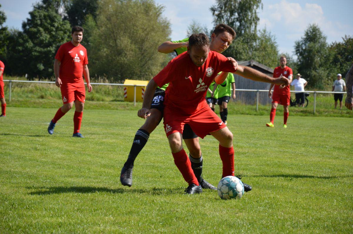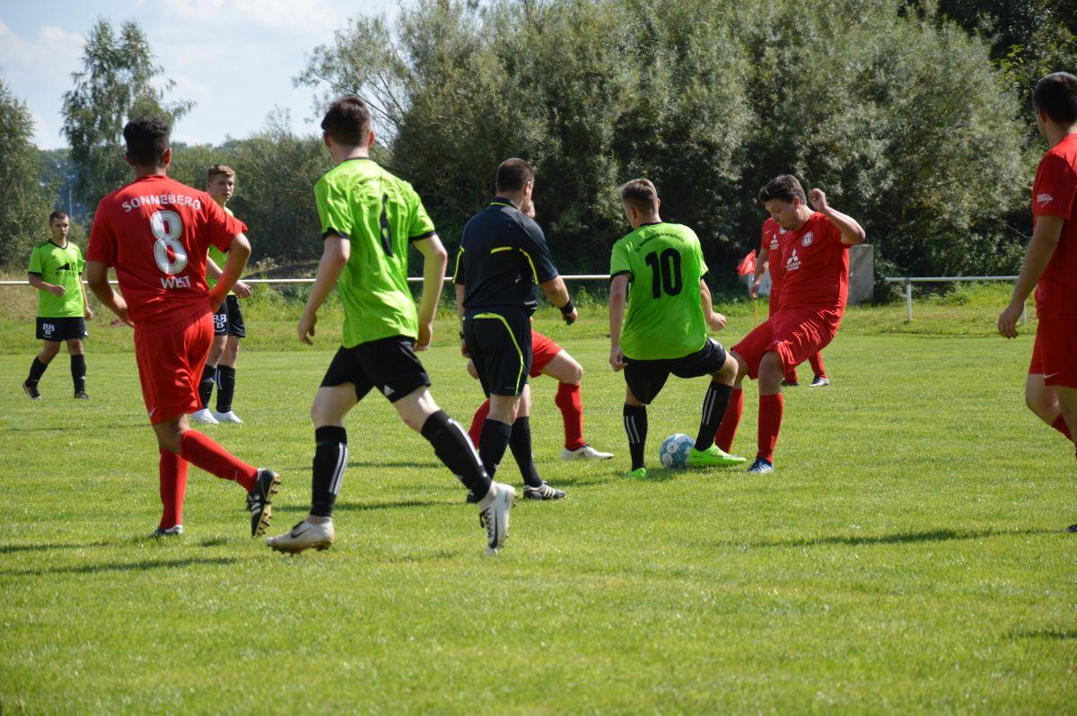 Die Reserve des TSV "Germania 1884" Sonneberg-Westwird präsentiert von: ![]() Knappe Kerwapleite gegen verjüngte Föritztaler Ein Bericht von Jojo Döbrich Bettelhecken. Bei sommerlichen Temperaturen verlor die Germania Reserve ihr erstes Punktspiel der neuen Saison 2021 gegen die Zweite vom SV Isolator Neuhaus Schierschnitz 0:1. Spielertrainer Andreas Luther und Steffen Lippmann halfen bei der ersatzgeschwächten Ersten Mannschaft aus. Umso erfreulicher war es, dass Flügelflitzer André Matthes sein Comeback für die Rot-weißen feierte. Das Spiel startete furios. Bereits nach 4 Minuten fiel der goldene Treffer für die Gäste:Krauß erlief sich einen langen Ball über die linke Abwehrseite der Bettelhecker, tanzte einen Verteidiger aus und schloss vom sechzehner Eck ab. Sein Sonntagsschuss schlug unhaltbar für Keeper Okosun im linken Torwinkel ein. Sichtlich geschockt, benötigen die Germanen etwas Zeit um wieder in die Spur zu kommen. Doch dann erspielten sich die Mannen um Kapital Götz einige vielversprechende Torchancen. Leider wurde am Vorabend zu wenig (oder zu viel) Zielwasser getrunken und die zahlreichen Abschlüsse gingen meist ins Fangnetz. Das gleiche Bild in Halbzeit zwei. Der unermüdliche Matthes peitschte seine Mitspieler immer wieder nach vorne, doch war der Fußballgott heute leider kein Westler. Nennenswerte Tormöglichkeiten waren ein Kopfball von Hähnlein knapp über den Querbalken und ein strammer Schuss von Conrad direkt auf den fehlerlosen Schlussmann der Iso. Auch der Torwart der Germania konnte sich nach einigen Kontern der Gäste noch auszeichnen und verhinderte eine höhere Niederlage. Die Kräfte schwanden in den Schlussminuten immer mehr und es blieb bei der unglücklichen knappen Niederlage. Erwähnenswert noch die Gelb-rote Karte nach wiederholtem Foulspiel von Conrad, was die äußerst angespannte Personallage beider Männermannschaften nicht gerade verbessert. Zudem muss im kommenden Auswärtsspiel in Heinersdorf auf die urlaubenden Götz und Döbrich verzichtet werden. Nach sehenswertem Kerwasieg der Alten Herren am Freitagabend,