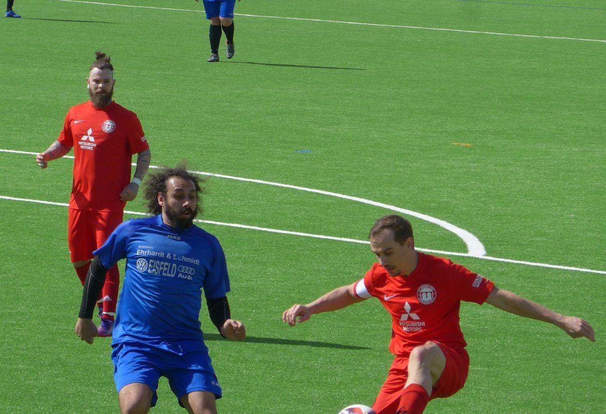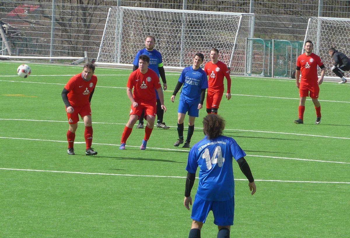 Rückkehrer Marcel ,,Sally‘‘ Lehneck gab sein Comeback im Angriff, und Max Büchner vertat den abwesenden Okosun durchaus sehenswert im Tor. Nach kurzem Abtasten beider Teams gab es auch direkt die ersten vielversprechenden Möglichkeiten. Beide Mannschaften versuchten spielerisch zum Torerfolg zu gelangen. So fiel in der 17. Minute das 1:0 der Gäste nach einem unnötigen Ballverlust in der Vorwärtsbewegung durch den flinken Schalkauer Eichhorn! Die Jungs um Kapitän Matthes schüttelten sich kurz und erzielten fast im Gegenzug den Ausgleich durch den gut aufspielenden ,,Sally‘‘! Vorausgegangen war eine klasse Kombination von Schubert und Matthes, welcher den Torschützen mustergültig bediente. (23. Minute) Nun folgten weitere mutige Angriffe beider Teams, wobei der Chancenvorteil klar bei der Germania lag. Gute Möglichkeiten durch Lehneck, Matthes und Schubert wurden aber teils kläglich vergeben, oder ein Schalkauer Verteidiger hatte noch einen Fuß dazwischen. Etwas cleverer, und man hätte das Spiel bereits in Hälfte eins entscheiden können. Zur zweiten Halbzeit hatten sich die Germanen einiges vorgenommen. Doch es kam anders… Die Gäste legten los wie die Feuerwehr und setzten die Germania- Defensive gehörig unter Druck. Den aufmerksamen Verteidigern um Abwehrchef Conrad und dem Keeper Büchner ist es zu verdanken, dass man in dieser Phase nicht 4-5 Tore kassiert hatte. Die Kräfte bei der Heimelf schwanden Minute um Minute. Einige vereinzelte Nadelstiche konnten die Angreifer zwar noch setzen, aber den sogenannten ,,Lucky Punch" konnte keine Mannschaft mehr erzielen. Fazit: Ein vor allem in Hälfte Eeins, munteres Fußballspiel endete mit einem durchaus gerechten Unentschieden. Man fragt sich nun, was wäre, wenn mehr Akteure das Training wahrnehmen würden und die Luft in Hälfte Zwei länger ausgereicht hätte?! Nächstes Spiel kommenden Samstag 13 Uhr gegen Sachsenbrunn/ Crock wird man sich neu beweisen müssen! Tore: 0:1 Eichhorn (17.), 1:1 Marcel Lehneck (23.).