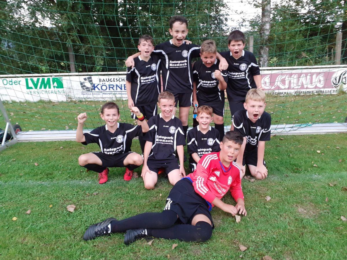 Anfangs der zweiten Halbzeit waren die Hausherren sehr stark und kamen immer wieder durch unsere Abwehr. Maiky musste sein Tor oft verteidigen. In der 48. Minute schoss Julian das vierte Tor. Schalkau /Effelder II spielte sich immer besser ein, und unsere Abwehr hatte gut zu tun. Die Tore fielen aber auf der Gegenseite. Kurz vor Ende in der 52. Minute erzielte Theo seinen dritten Treffer zum sicher viel zu hohen 5:0-Endstand. Aufgebot: Maiky; Levin, Julian (1 Tor), Max G. , Paul-Noél (1), Amer, Leon, Theo (3), Maxi B.