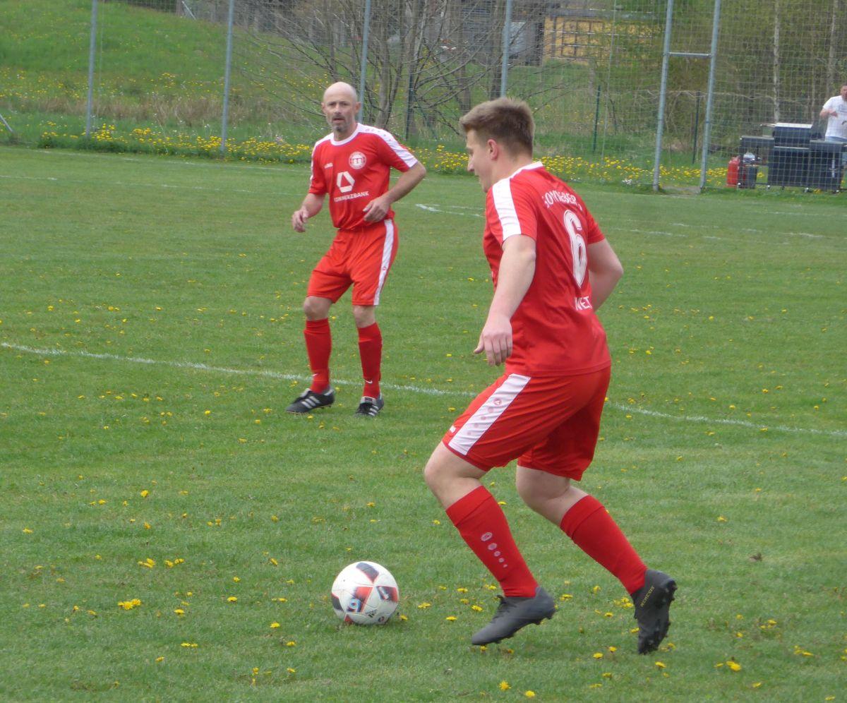 ein – ein kurioses Tor (26.). Die Luther-Schützlinge schüttelten sich kurz und zeigten eine schöne Kombination, an deren Ende der emsige Holland aus zentraler Position abzog, doch die Direktabnahme konnte Bock klären (37.). Aus dem folgenden Eckball resultierte der nächste Riese, doch der Kopfball des aufgerückten Capitano Rauch ging knapp drüber. Die SG-Defensive wehrte sich mit allen Mitteln gegen die drückenden Germanen, und Schieri Linß war nicht nur in diesen Minuten arg gefordert. Zunächst gab es einen Freistoß direkt am Strafraum der Gäste, den Liebermann verzog. Dann überschlugen sich in der Nachspielzeit die Ereignisse, und die Hausherren kamen tatsächlich in zwei Minuten zum Ausgleich. Nach ungeschicktem Foul an Holland, verwandelte Liebermann den folgenden Elfmeter sicher, und die aus dem nächsten Freistoß resultierende Flanke ließ Lippmann über den Scheitel rutschen und überraschte damit Bock – Ausgleich (45.+2). Der TSV nahm den Schwung in die zweite Hälfte mit und hatte durch Liebermann, der per Lupfer am herauseilenden Bock scheiterte sowie Lippmanns Schuss, den ebenfalls der SG-Schlussmann klärte, die nächsten Riesen, deren Auslassen sich noch rächen sollte. Ein ungeahndeter Rempler, der Liebermann aus bester Position niederstreckte war dann für einige Zeit die letzte Strafraumaktion der nun abbauenden Westler. Die Gäste bekamen wieder mehr Zugriff und drehten prompt das Spiel. Leis scharf getretenen Freistoß aus eigentlich ungefährlicher Position fälschte Rädlein unhaltbar für seinen verduzten Keeper ab – 2:3 (60.). Unmittelbar darauf der nächste einfache Ballverlust im Spielaufbau und den schnell vorgetragenen Konter über rechts folgte einen präzise Eingabe auf den langen Posten, die der mitgelaufene Traut verwandelte. Die Heimelf versuchte noch einmal zu antworten, doch die Schützlinge des gelb verwarnten Amend verhinderten mit allen Mitteln weitere Hochkaräter und hatten gegen die aufgerückten Gastgeber durch Leis (Truthän pariert) und Herrndorf (frei vor Tor vorbei) zwei weitere Riesen. Sicher wäre es noch einmal spannend geworden, wenn Luthers Steckpass auf den durchgelaufenen Robert Koch den Anschluss gebracht hätte, denn es gab durchaus eine üppige Nachspielzeit nach den zahlreichen Unterbrechungen. Am Ende blieb es beim Erfolg der Gäste nach einem umkämpften Spiel, mit dem sich die SG für die Hinrundenniederlage revanchierte. Die Westler müssen dringend an ihrer Chancenverwertung arbeiten und sich in allen Mannschaftsteilen steigern. Dann wird auch das am heutigen Tage fehlende Spielglück wieder kommen. Tore: 0:1 Traut (1.), 0:2 Schmidt (26.), 1:2 Foulelfmeter Franz Liebermann (45.+1), 2:2 Steffen Lippmann (45.+2), 2:3 F. Leis (60.), 2:4 Traut (62.)