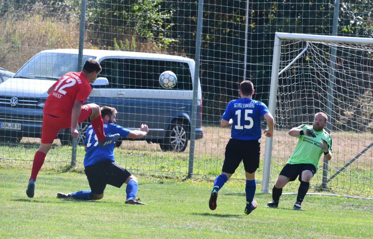 Die Reserve des TSV "Germania 1884" Sonneberg-Westwird präsentiert von: ![]() Kerwaniederlage gegen gut besetzte 51er Infos von Johannes Döbrich Bettelhecken. Leider musste sich unsere Reserve der SG 1951 Sonneberg II mit 1:3 geschlagen geben (Hz 1:1). Unseren zwischenzeitlichen Führungstreffer erzielte der munter aufspielende Jamil Nasiri. Philipp Koch hatte beim Stand von 1:1 den Führungstreffer auf dem Fuß, scheiterte aber am starken Gäste-Keeper. Für die SG trafen: Gruber, Pertsch und Höfler.. Tore: 1:0 Jamil Nasiri (26.), 1:1 Gruber (33.), 1:2 Pertsch (84.), 1:3 Hofler (87.)