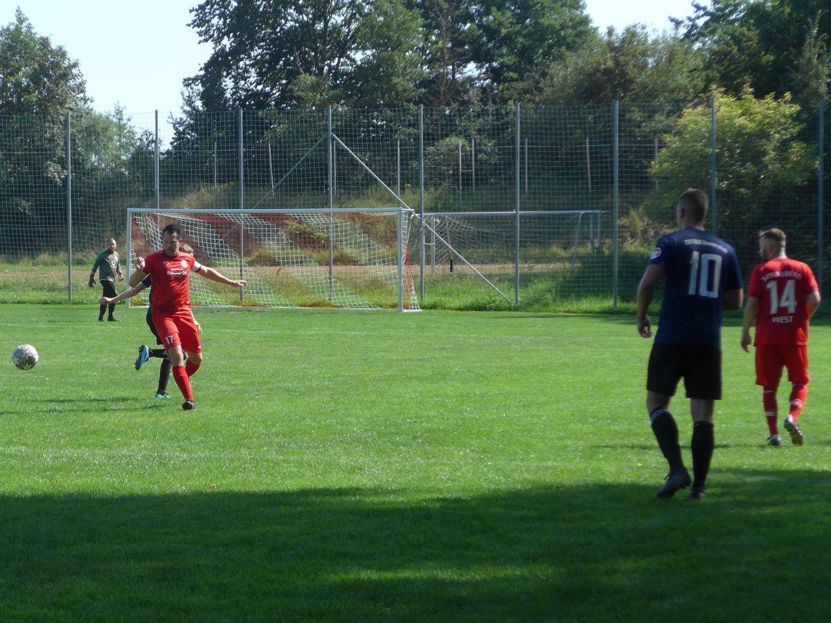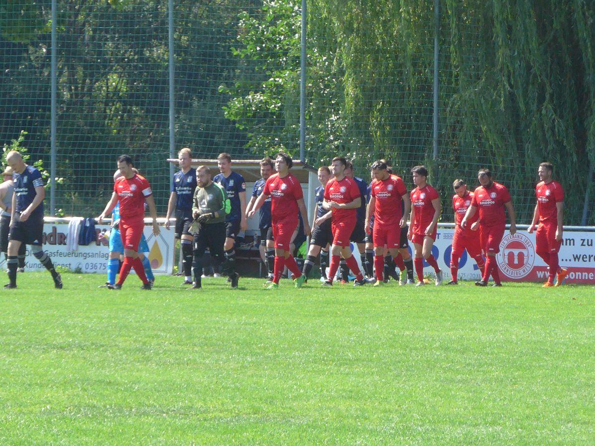Die Männermannschaft des TSV "Germania 1884" Sonneberg-Westwird präsentiert von: ![]() Geglückter Heimauftakt gegen Ummerstadt Ein Bericht von Uwe Stark Bettelhecken. Nach dem Unentschieden in Heubisch, zeigten sich die Germanen im ersten Heimspiel der neuen Kreisligasaison gegen den TSV Ummerstadt verbessert. Bei hochsommerlichen Temperaturen brachte ein gelungener Angriff über die rechte Seite die frühe Führung durch Spielertrainer Funke, der eine Eingabe von Rückkehrer Rezai am zweiten Pfosten verwandelte (7.). Danach neutralisierten sich beide Mannschaften oft, und es gab nur wenige Hochkaräter. Doch kurz vor der Pause traf Schmidt mit einem satten Linksschuss und überraschte dabei den Ummerstädter Saske im Tor (40.). Den möglichen Anschlusstreffer vergab der eingewechselte Eberlein frei vor dem TSV-Gehäuse und verzog nur knapp. Nach der Pause drängten die Germanen auf die Vorentscheidung vor allem durch den flinken Rezai, der dabei zwei Riesen vergab (50. + 53.). Das 3:0 fiel dann doch nach Vorarbeit von Neuzugang Hertel, der Schmidt mustergültig bediente (55.). Nachdem die Gäste auch bei zwei Hochkaräter den aufmerksamen Truthän nicht überwinden konnten, blieb dem bis dahin glücklosen Rezai mit einem Abschluss im Fünfmeterraum nach langer Flanke auf den zweiten Pfosten der Schlusspunkt zum 4:0 vorbehalten (72.). Tore: 1:0 Stephan Funke (7.), 2:0 + 3:0 beide Nico Schmidt (40. + 55.), 4:0 Amir Rezai (72.) West: Truthän, Rauch, Dux (46. Luther), Hertel (80. Oberender), Müller-Sixer, Rebhan, Schubert (73. Bauer), Hähnlein (66. Großmann), Schmidt, Rezai, Funke Nächstes Spiel: Sonntag, 27.8.2023 15:00 Uhr Pokal in Fehrenbach Samstag, 2.9. 16:00 Uhr daheim gegen Gleichamberg