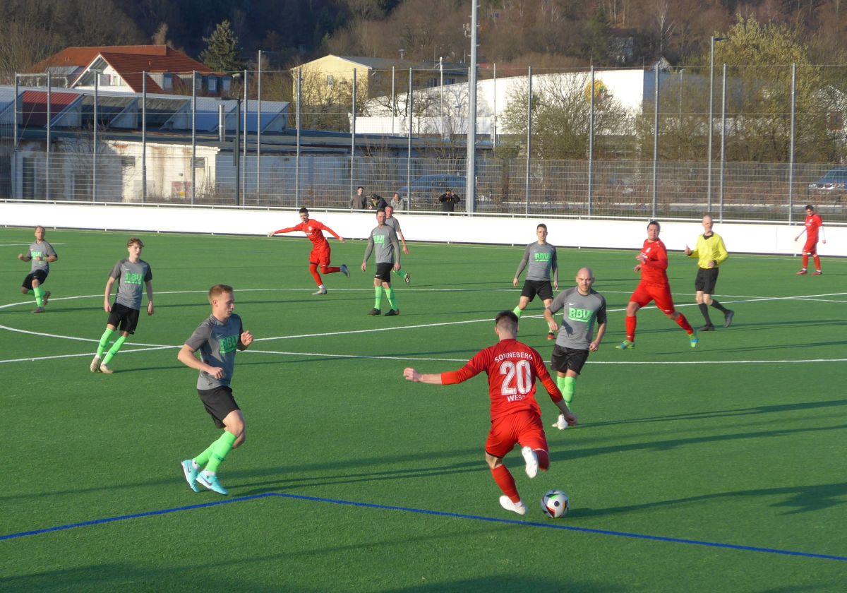 Die Männermannschaft des TSV "Germania 1884" Sonneberg-Westwird präsentiert von: ![]() Fehlstart zum Frühjahrsauftakt Ein Bericht von Stephan Funke Sonneberg. Am Samstag gastierte die SG Mendhausen/ Römhild zum Nachholspiel des letzten Spieltages aus der Hinrunde auf dem Städtischen Kunstrasenplatz. Die Schützlinge von Stephan Funke hatten sich viel vorgenommen, aber die erste Halbzeit war zum Vergessen. Wie schon in Schleusingen waren die ersten 45 Minuten unterirdisch. Durch zwei individuelle Fehler luden wir die Gäste aus Mendhausen zum Toreschießen ein. Maximilian Flossmann per Kopf nach Flanke auf den zweiten Pfosten (14.) und Paul Leffler per Heber über den herauseilenden Truthän (42.) bedankten sich. Soviel zur ersten Halbzeit. Nach der Halbzeitansprache war die Mannschaft wie ausgewechselt. Zur zweiten Halbzeit brachte Funke Johannes Döbrich für Franz Großmann und stellte auf drei Stürmer um. Nun folgte ab der 46. Minute ein Sturmlauf der Germanen. Aber leider wollte das Tor nicht fallen. In der 65. Minute hätte Rauch frei vor dem Tor den Kopf nehmen müssen, aber er nahm den Oberschenkel, und der Ball flog leider über das Tor. Immer wieder waren es Rezai und Krauß, die über Außen Betrieb machten, nur der finale Pass fehlte. In der 80 Minute war es dann soweit; Rezai kam über die Außen bis zur Grundlinie durch spielte den Ball quer auf Krauß, der ohne Mühe einschob. So einfach ist Tore schießen. Die letzten 10 Minuten das gleiche Bild... Spiel auf ein Tor.. Aber der Ausgleich sollte einfach nicht mehr fallen. An die starke zweite Hälfte müssen wir anknüpfen, um die nächsten wichtigen Spiele erfolgreich zu gestalten. Aber im Großen und Ganzen hat Mendhausen verdient gewonnen, weil sie effektiver waren als die Germanen. Jetzt heißt es Mund abputzen und fokussiert arbeiten, um sich auf die nächsten Aufgaben und Spiele vorzubereiten. Tore: 0:1 Maximilian Floßmann (14.), 0:2 Paul Leffler (42.), 1:2 Lucas Krauß (87.) West: Truthän; Rebhan, Rauch, Rädlein, Dux (80. M. Popp), Raab, Jon. Döbrich, Müller-Sixer (55. Luther), Großmann (46. Joh. Döbrich), Rezai, Krauß - Bauer