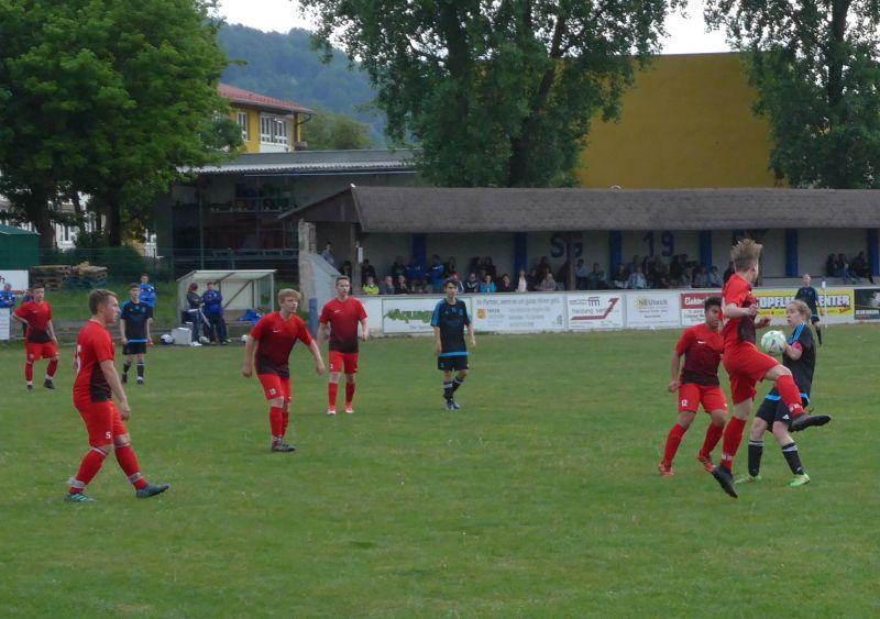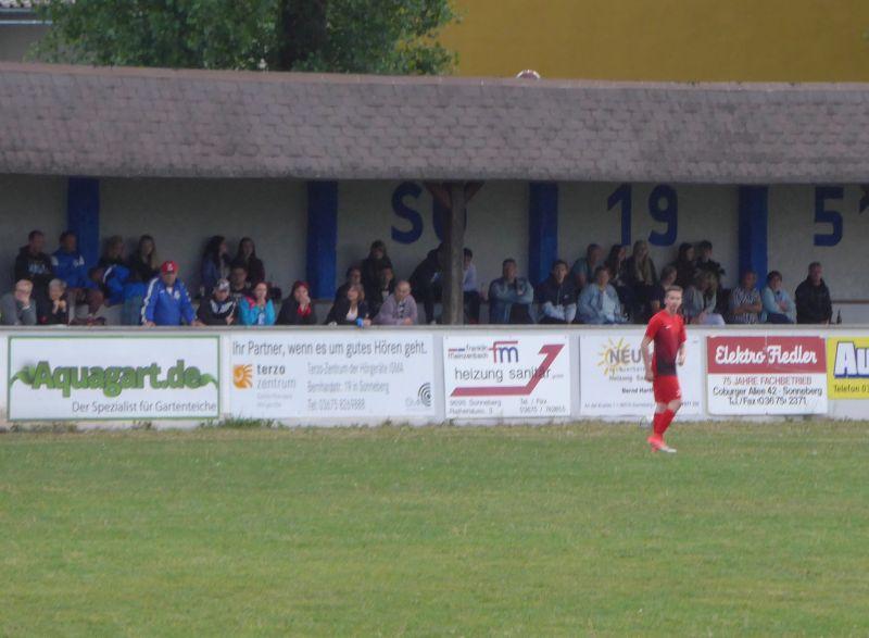 präsentiert die B-Jugend 2017/2018 Derbysieg bei der SG 51 Sonneberg Ein Bericht von Uwe Stark Wolkenrasen.Die B-Jugend zeigte sich nach dem Kantersieg in Köppelsdorf auch im Wolkenrasen gut erholt von der schwachen Leistung aus dem Lauscha-Spiel. Gegen den Stadtnachbarn, der vor dem Spiel immer noch Ambitionen auf Platz 2 hatte und uns zur Kerwa noch das Nachsehen gab, ging es anfangs hin und her, wobei unsere SG die feinere Klinge schlug, einige Schusschancen der 51er aber zuließ. Zu Toren reichte das freilich noch nicht, da bedurfte es eines Freistoßes von Moritz, bei dem der sonst gute Keeper der Heimmannschaft falsch stand. Aber auch das muss man erst mal ausnutzen können.