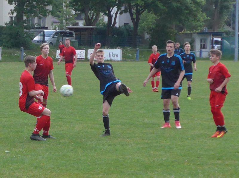 In der zweiten Hälfte hatten die Schützlinge von Steffen Riedel viel Spielkontrolle, konnte aber den dünnen Vorsprung erst in den letzten 20 Minuten ausbauen. Zuvor brachte sich Moritz selbst in Bedrängnis und wurde vom aufmerksamen Knauer zurecht mit Gelb verwarnt, da Tim noch auch Höhe des Zweikampfes war. Der zuletzt vermisste Sascha brachte viel Schwung und Tempo ins Spiel unserer Mannschaft und zeigte sich nach schöner Kombination über mehrere Stationen für das 2:0 verantwortlich. Nachdem die Heimmannschaft einen Riesen neben das Gehäuse setzte, belohnte sich auf der anderen Seite Shahab für seine starken Leistungen in den letzten Wochen mit dem 3:0.