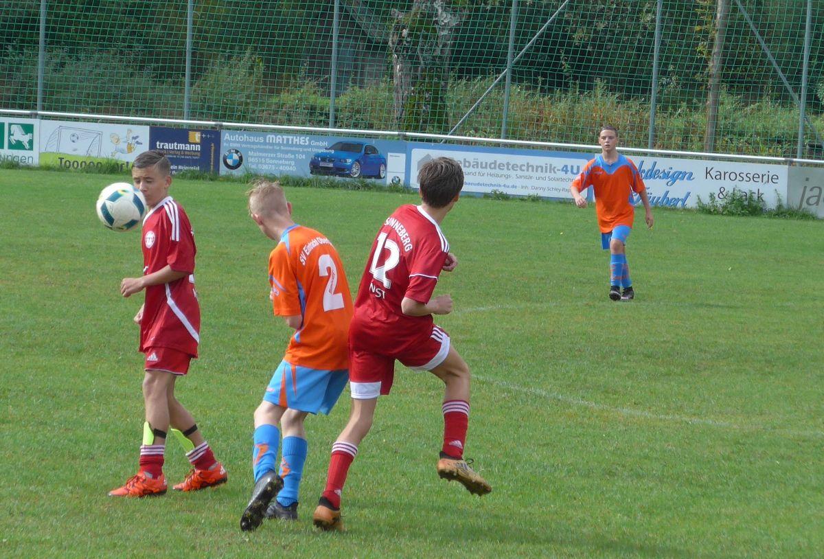 Erster Dreier in neuer Altersklasse Ein Bericht von Uwe Stark Bettelhecken. Unsere C-Junioren empfingen am Samstag im Vorspiel zum Kreisderby der Männer die SG Goßmannsrod/ Oberland. Unsere Mannschaft steigerte sich von Minute zu Minute und ging nach 23 Minuten durch den heute stark aufspielenden Paul mit einem sehenswerten Aufsetzer verdient in Führung. Die Schützlinge von Günter Förtsch und Danny Heyder konnten nachlegen, denn Tristan traf nach schönem Angriff. Kurz darauf das 3:0 durch Paul, der von den Gästen nur schwer zu stellen war. In der zweiten Halbzeit verflachte unser Spiel etwas und die SG kam besser ins Spiel und erzielten durch Otto das 1:3. Nun wackelte unsere Mannschaft etwas, doch kurz darauf die Erlösung in Form des nächsten Treffers durch Valentin. Er reagierte blitzschnell und überwand den guten zweiten Torwart der SG mit der Pike. Im letzten Drittel des Spiels rückte immer wieder Philip in den Mittelpunkt und zeigte sich erneut in guter Form. Fazit: Am Ende gab es einen verdienten ersten Punktspielerfolg unserer jungen Mannschaft gegen gleichalte und letztes Jahr noch Kleinfeld spielende Gäste. Es spielten: Philip F.; Lennart, Kevin, Leo, Julian, Philip S., Johnny, Paul (2), Tristan (1), Valentin (1), Ahmed, Jawad Nächstes Spiel: Donnerstag, 3.10. 10:30 Uhr Pokal daheim auf Großfeld gegen den SV Sachsenbrunn Die Bilder zum Spiel: Nutzt die Angebote unserer Sponsoren, es lohnt sich... |