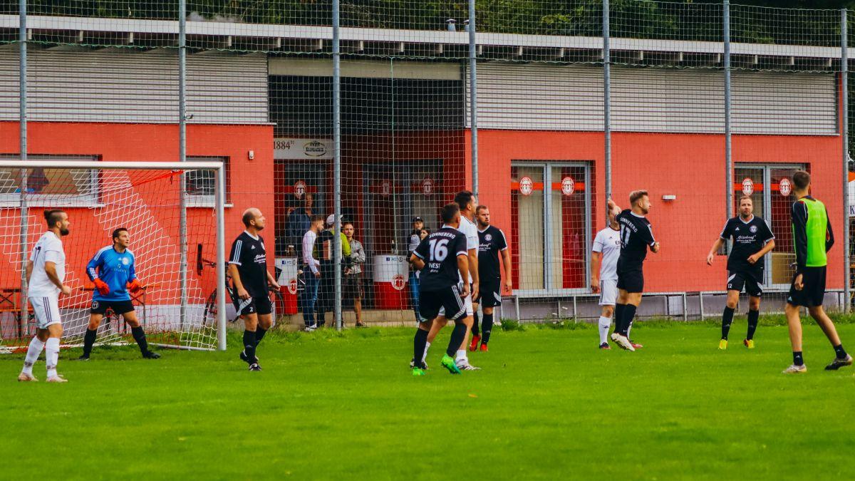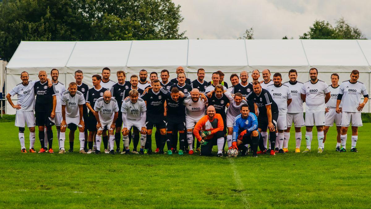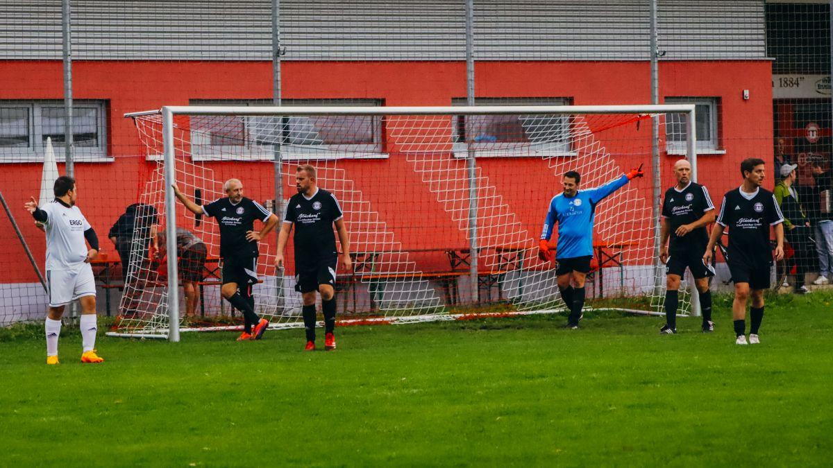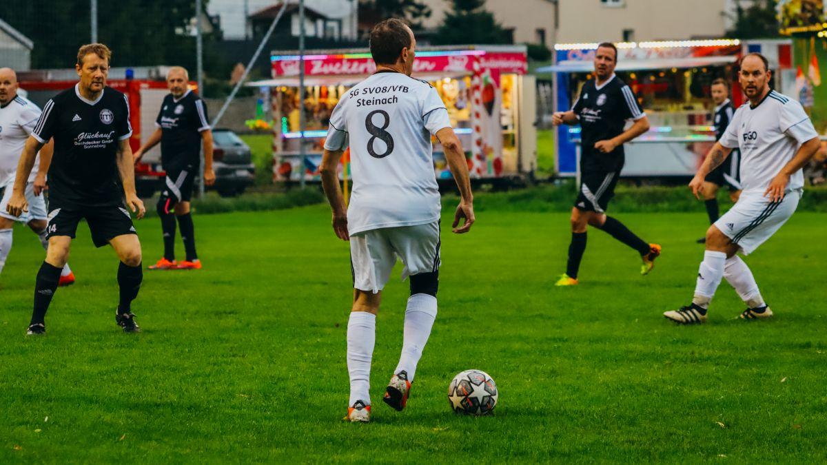 Die Alt-Herren-Mannschaft des TSV wird präsentiert von ![]() + Roth-Bau Klasse Kerwa-Spiel gegen Steinach Ein Bericht von Florian Brückner Am Kirmes-Freitag gastierte die Steinacher Alt-Herren-Auswahl am Karpfenteich. In einem hochklassigen und fairen Aufeinandertreffen hatten die Westler mit 4:3 die Nase vorne. In der ersten Hälfte gingen die Germanen durch den quirligen Maier in Führung. Wenig später erhöhte Götz auf 2:0. Nach einer starken Drangperiode und zwei verdienten Treffern der Gäste hieß es dann wieder 2:2. Nach der Pause folgte die stärkste Phase der Germania. Zwei sehenswerte Angriffe der Hausherren wurden von Scheler und Rexheuser veredelt. Kurz vor Schluss konnten die Steinacher nochmals verkürzen. Am Ende lautete das Ergebnis 4:3 für die TSV Germania. Alle aktiven Spieler und Funktionäre möchten sich nochmals herzlich bei den vier Sponsoren Elektro Sonneberg, Eventhotel Schlossberg, Roth Bau und Steuerberatung Fiducia für die erstklassigen Trainings-Outfits bedanken. Nicht unerwähnt sollte die stimmungsvolle Performance der feierwütigen Steinacher Kicker im Bierzelt bleiben. Hut ab, die dritte Halbzeit ging an euch Jungs!!! Aufgebot: Rexheuser, Götz; D. Roth, S. Roth, Nicolai, Rexheuser, Haas, Scheler, Baumann, Maier, Richter, Eber, Brückner, Karl, Popp, Wohlfahrt + ??