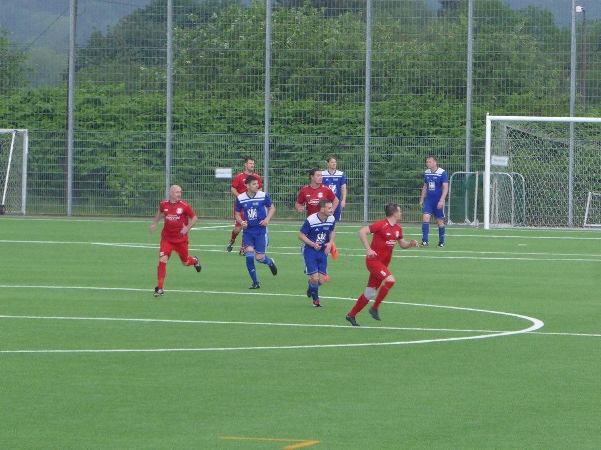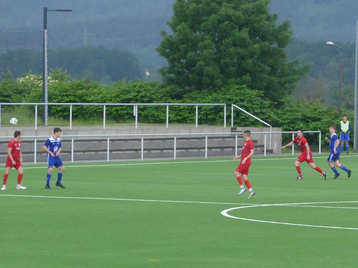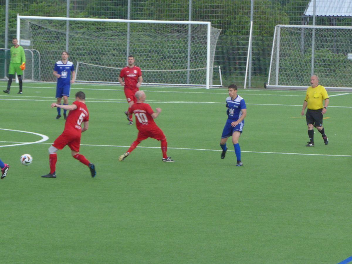 Sonneberg. Das letzte Heimspiel der Germanen fand aufgrund der Wettervorhersage im Stadion statt, was sich im Nachhinein als richtig erwies, denn ein heftiger Starkregen mit einigen Hagelkörnern erschwerte allen Beteiligten die Durchführung des Punktspiels. Die stark ersatzgeschwächten Westler hatten durch den dribbelnden Rezai den ersten Riesen, doch Hoffmann parierte. Gefühlt im Gegenzug der erste Freistoß der Gäste und der Ball lag nach kurzem Pingpong plötzlich im TSV-Tor – Schubert wurde als Eigentorschütze aufgeführt. Ein überflüssiges Gegentor. Die Funke-Elf machte weiter das Spiel und hatte durch Krauß, Rezai und gleich zweimal Brückner die nächsten großen Möglichkeiten, die zum Teil leichtfertig vergeben wurden. Viel effektiver zeigte sich der Gegner; Hummel musste nach schnellem Konter über die linke Seite nur noch einschieben (30.). Den auf den Kopf gestellten Spielverlauf wollten die immer wieder von den erfahrenen Luther und Jojo Döbrich angetriebenen Hausherren noch vor der Pause korrigieren und Dux traf zum umjubelten Anschluss per Kopf nach Döbrich-Flanke. So dachten alle, der allein leitende Schieri Roszondai entschied jedoch auf Abseits. Heldburg wackelte weiter bei Flanken; Brückner setzte den nächsten Kopfball ziemlich unbedrängt neben das Gehäuse. Viele unnötige lange Bälle und einige zu schnelle Ballverluste brachten Heldburg wieder ins Spiel. Der im Tor aushelfende – und im Spiel vermisste Funke parierte einen Freistoß aus guter Position, doch mit dem nächsten langen Ball über die Abwehr wurde auch er von Clauß ausgetanzt, der zur Entscheidung traf (76.). Schade, denn trotz einiger fehlender Spieler wären Punkte möglich gewesen, und daran sollten die Westler auch am nächsten Sonntag in Römhild glauben. Tore: 0:1 Eigentor Schubert (4.), 0:2 Hummel (30.), 1:2 Moritz Popp (46.), 2:2 Lucas Krauß (51.), 2:3 Clauß (76.) West: Funke; Joh. Döbrich, Luther, Schubert, Raab, Dux, M. Popp, Hähnlein (73. Santen), Krauß, Rezai, Brückner - St. Popp